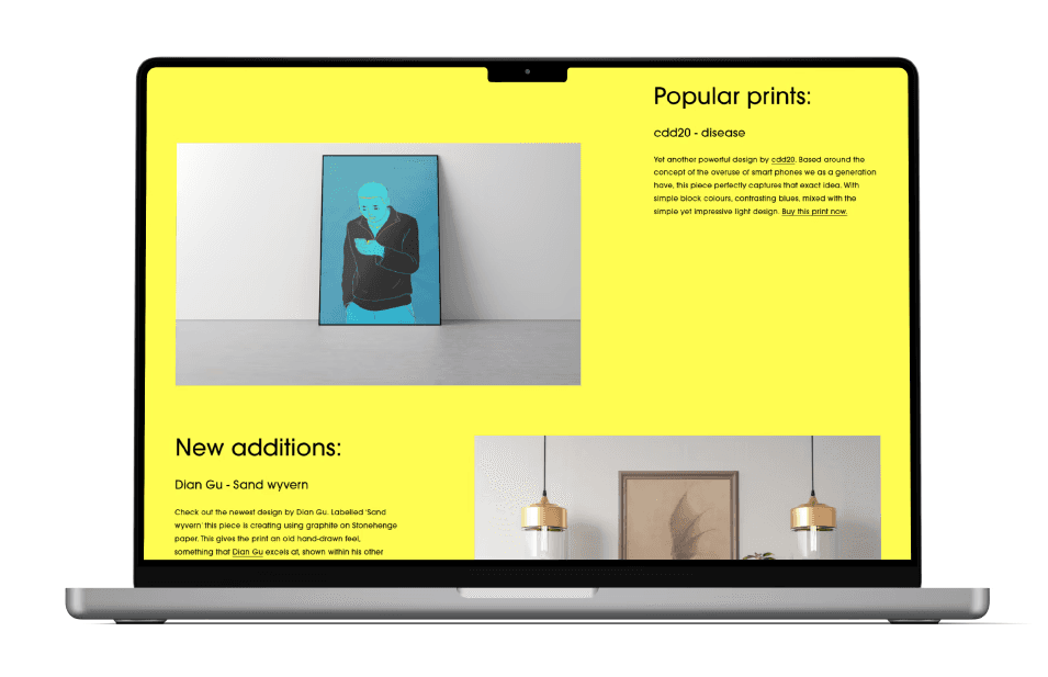 Bold and striking website design for The Art Repository, a platform supporting artists to sell posters and receive fair payment. The project included the landing page and e-commerce front end, as well as packaging design for poster tubes and business cards. The design was created to complement the artists’ work while maintaining a clear, cohesive, and engaging visual identity.